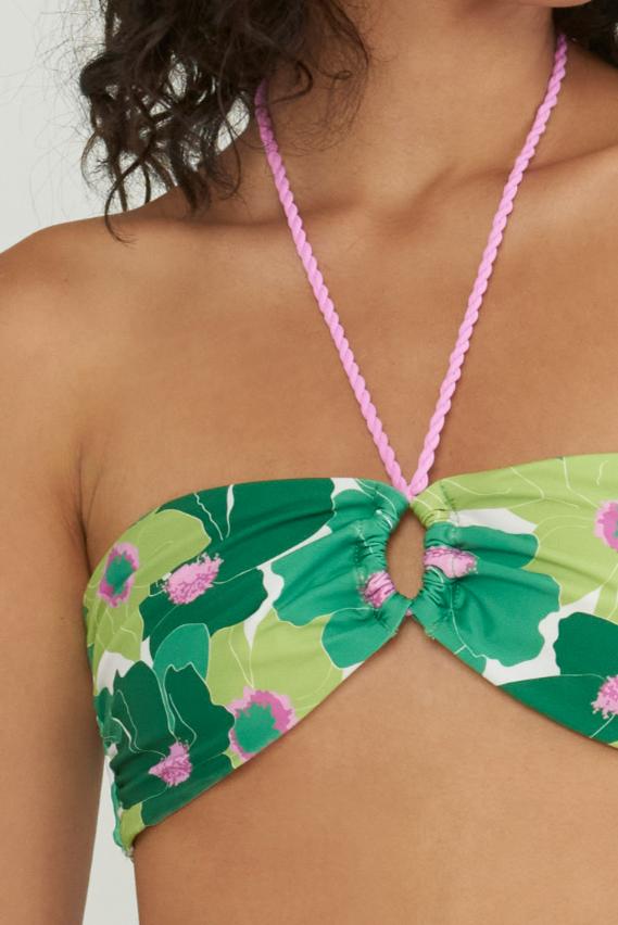 Le haut comporte une sangle torsadée licou nouée unique avec des pointes de cloche.
